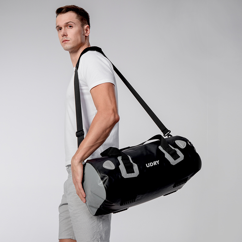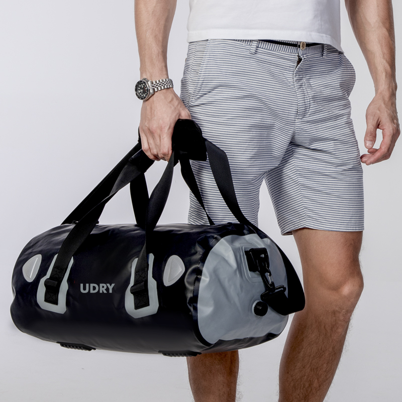 UDRY Waterproof duffel bag constructed by waterproof 500D PVC tarpaulin material with Heat Seal Finishing,all major pressure points have double